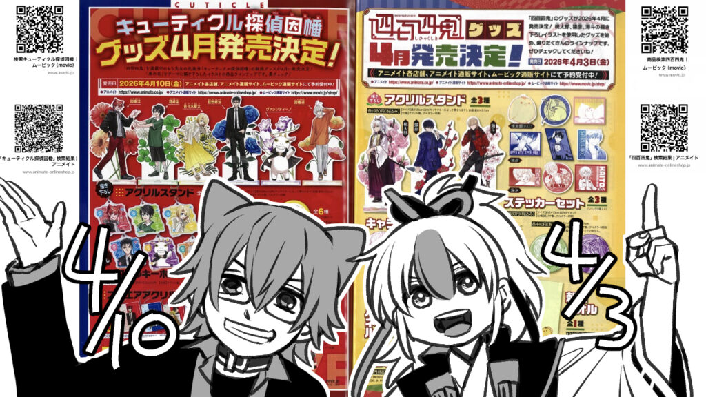 HOME 4月に発売する色々のまとめ 2026年4月1日 Gファンタジー4月号発売中☆ 2026年3月26日 Gファンタジー3月号発売中☆&因幡グッズのお知らせ! 2026年2月25日 Gファンタジー2月号発売中&四百四鬼グッズ情報☆ 2026年1月21日 四百四鬼9巻発売中!&POP UP SHOPレポ☆ 2026年1月7日 新発売 ご購入はこちらから▶︎ キューティクル探偵因幡 四百四鬼 ご購入はこちらから▶︎ animate ONLINE Amazon.co.jp カドコミ ご購入はこちらから▶︎ animate ONLINE Amazon.co.jp GFantasy ご購入はこちらから▶︎ animate ONLINE Amazon.co.jp GFantasy