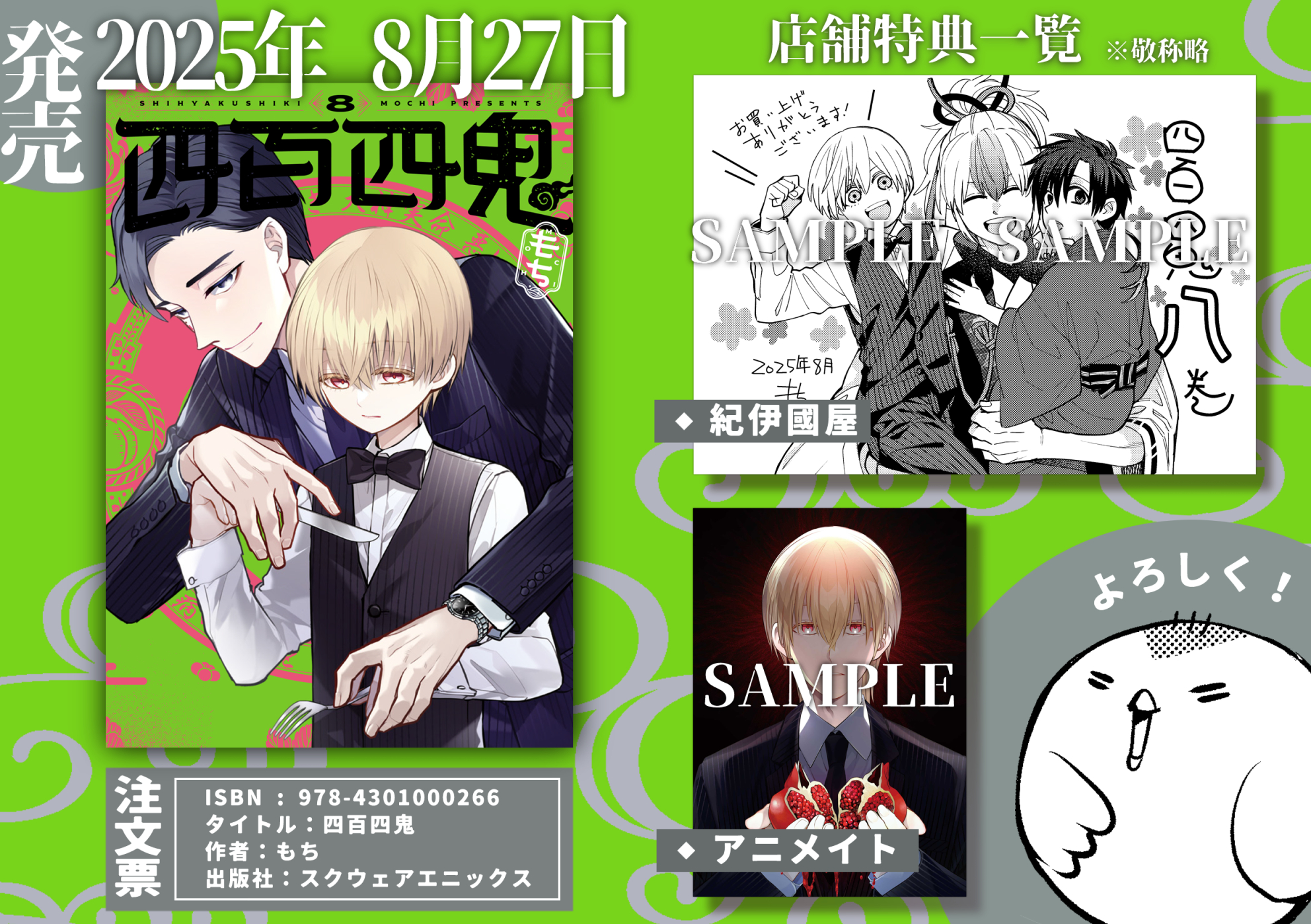 というわけで、帯には因幡くじの宣伝もついててレアなかんじ!好評発売中の『四百四鬼』8巻、よろしくお願いします☆
